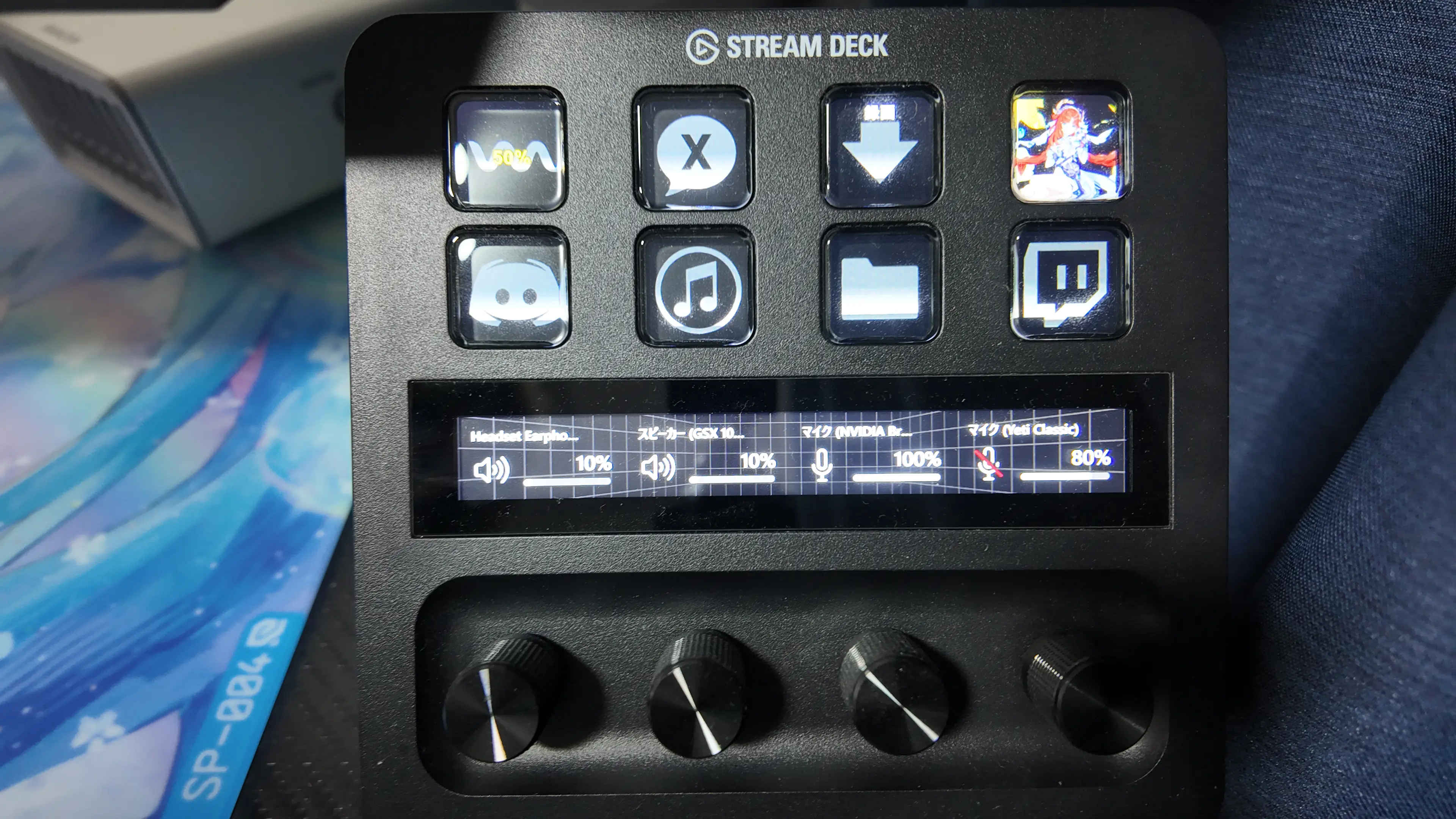 まず、Stream Deck +の特徴であるダイヤルとタッチパネルの活用が難しいです。 発想次第で化けるインターフェースなのは分かっているのですが、実運用は音量をダイヤルで回すといった平凡な使い方に留まりがちです。 ダイヤル回転/押し込み、タッチスワイプ/タップに最適なアクション設計が思いつかず、結局は従来どおりボタンを押す運用が中心になってしまいました。 機能はあるのに使いこなせていない悔しさがあります。